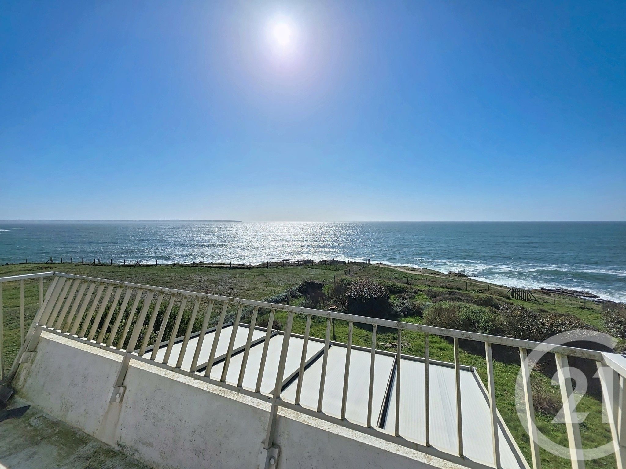 Le vaste salon-séjour, baigné de lumière, s'ouvre largement sur l'horizon. La cuisine indépendante complète cet espace de vie.